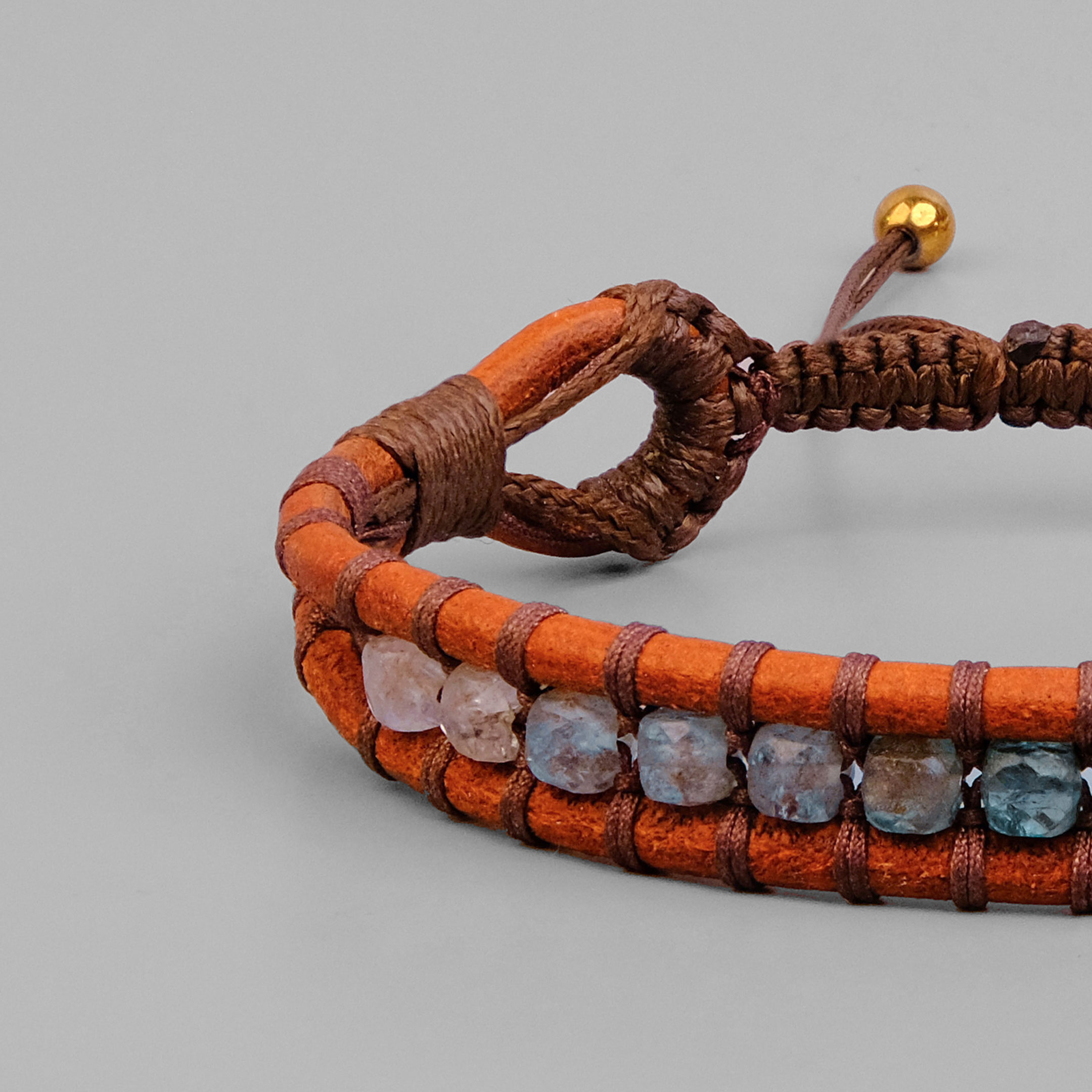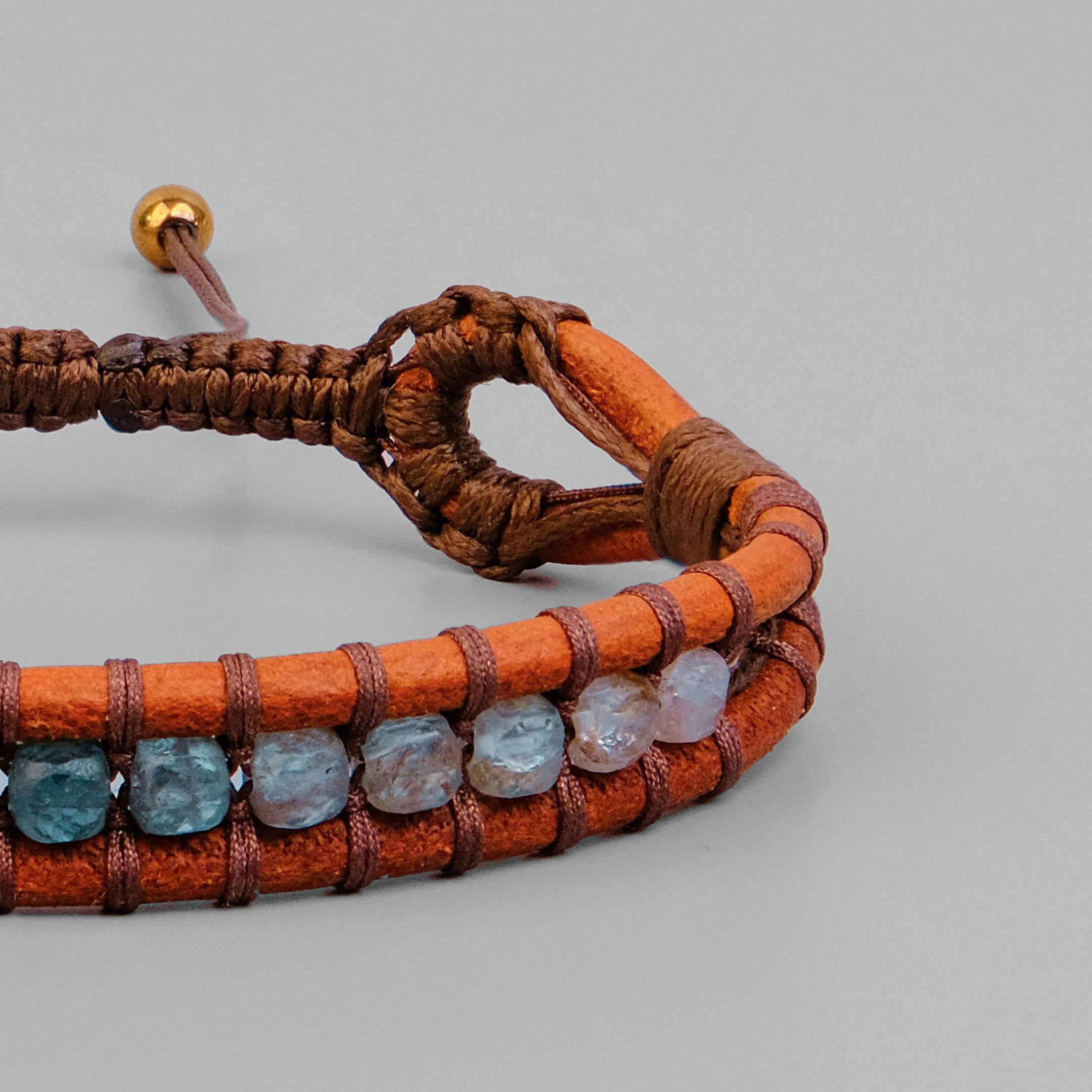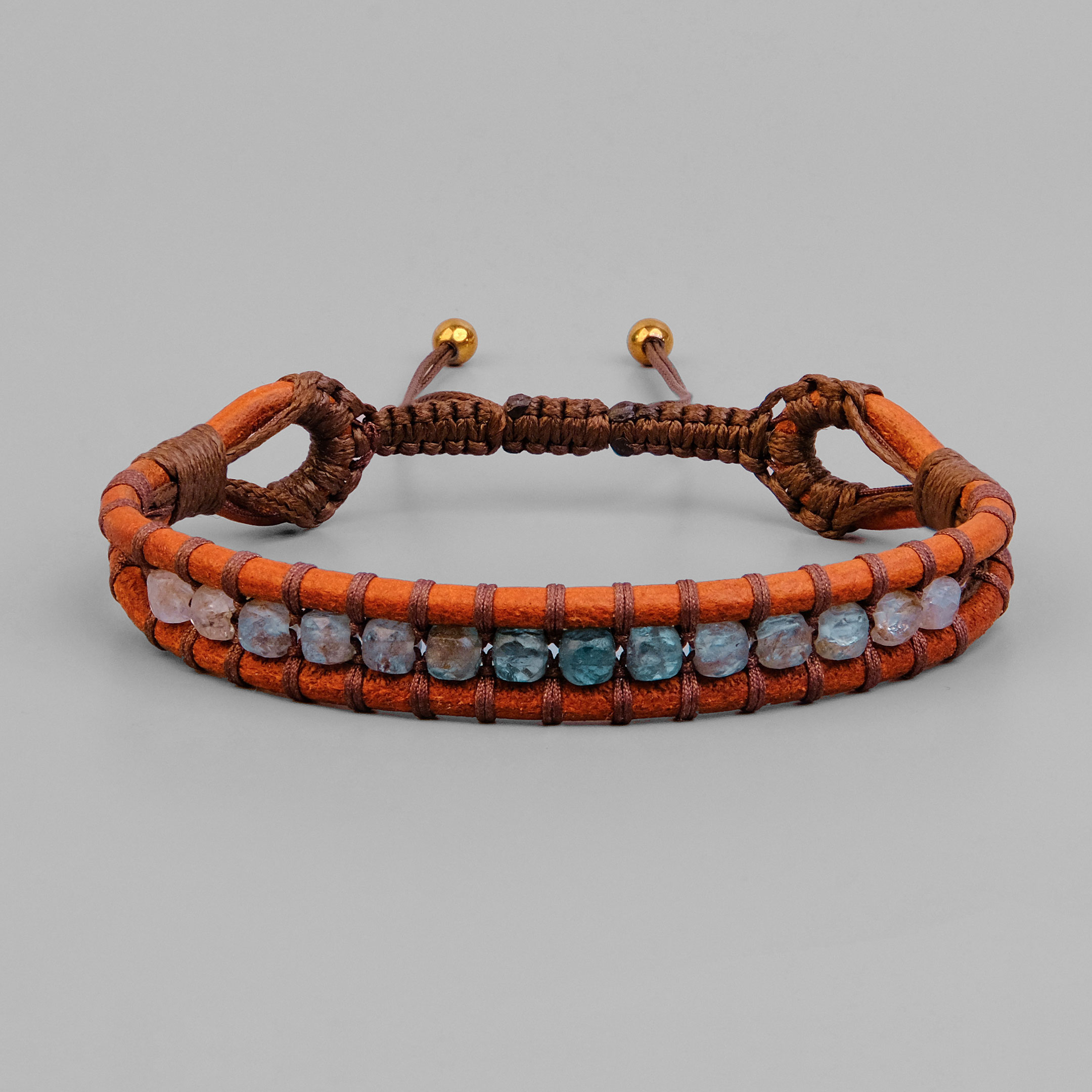 دستبند آکوا با ترکیب سنگ اکوامارین و چرم طبیعی، بهترین گذینه برای تکمیل کردن استایل اسپورت و یا مجلسی تان است و برای کسانی است که به دنبال آرامش، شفافیت ذهنی و تقویت ارتباطات خود هستند انتخابی عالی به شمار می آید . با پوشیدن این دستبند، نه تنها زیبایی را به استایل خود اضافه میکنید، بلکه از خواص شگفتانگیز اکوامارین نیز بهرهمند خواهید شد. این دستبند نه تنها یک اکسسوری زیبا است، بلکه یک همراه معنوی برای سفر زندگی شما خواهد بود.